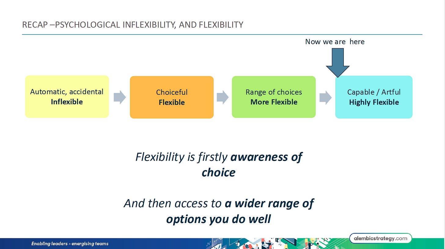 And it is something of a conundrum. People can experience inflexibility both through inexperience and over-experience. It is nicely expressed in this model of psychological flexibility.